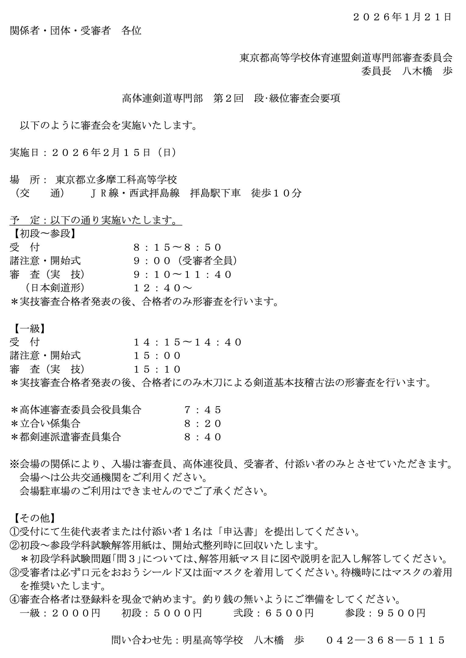 4. 【審査委員会より】2月の段級位審査会についてのお知らせ